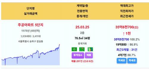대전 도룡포레미소지움 31평 8.7억 신고가