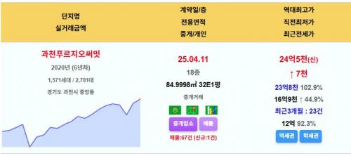 과천푸르지오써밋 24.5억 국평 과천 최고가돌파
