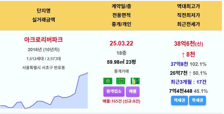 아크로리버파크 24평 38.6억 신고가