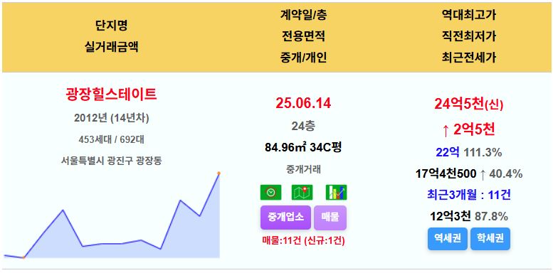 광진구 광장힐스테이트 34평 24.5억 신고가