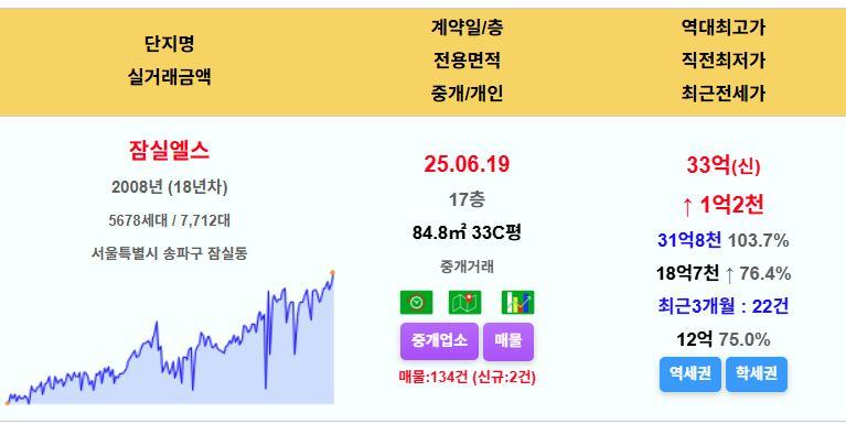 중구 삼성사이버빌리지 33평 15.2억 신고가