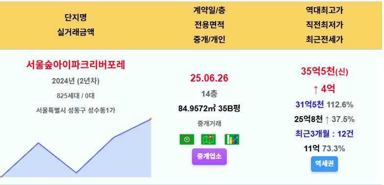 서울숲아이파크리버포레 35평 35.5억 신고가
