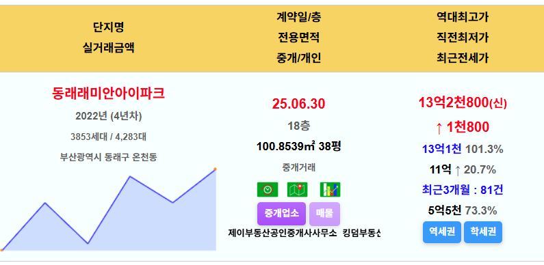 부산 동래래미안아이파크 38평 13.28억 신고가