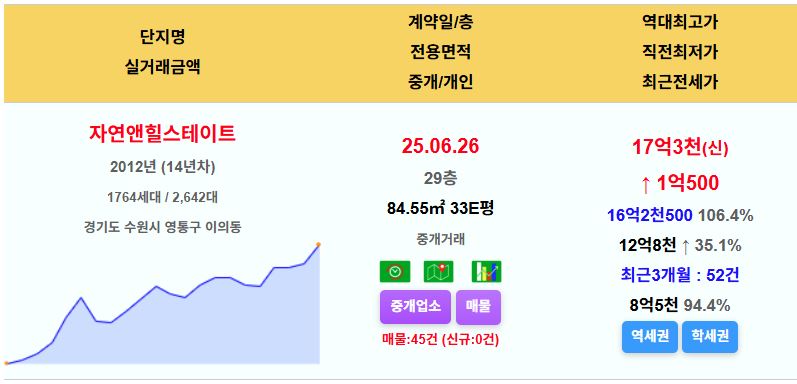 광교   자연앤힐스테이트 33평 17.3억 신고가