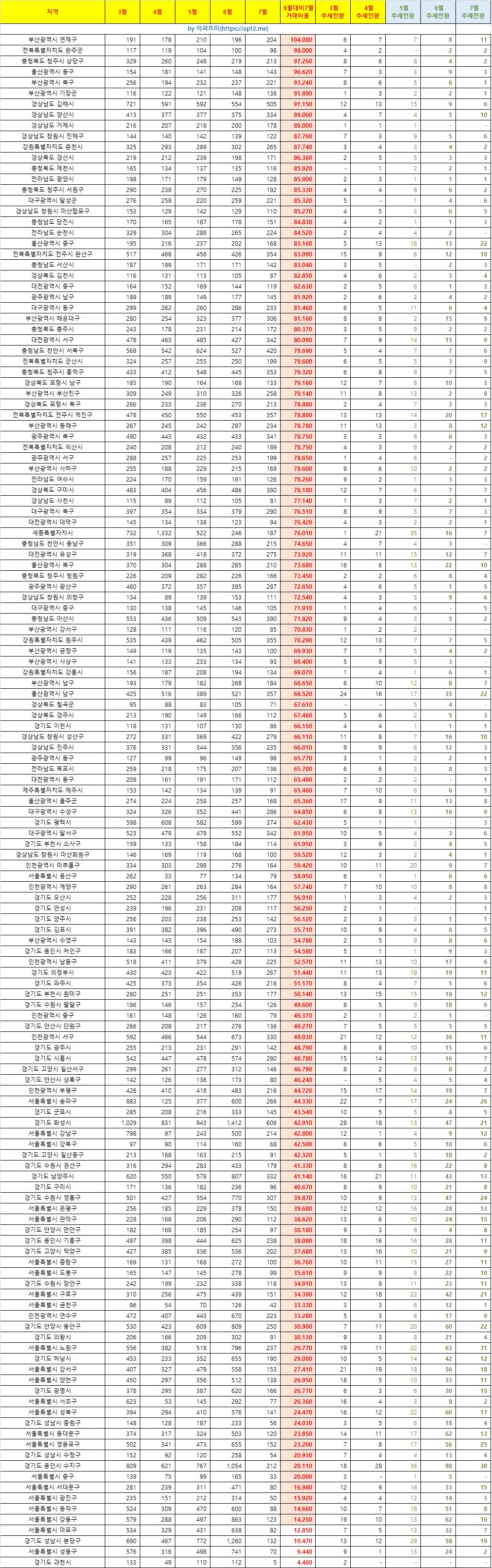 추세전환 : 아직 상승하지 않은 단지들중 변화가 생기는 시점의 거래들