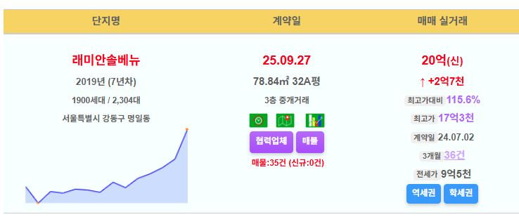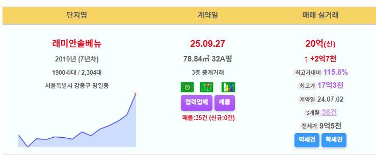 동대문구 래미안미드카운티 25평 13.5억 신고가