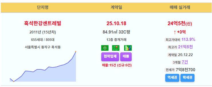 동작구 흑석한강센트레빌 32평 24.5억 신고가