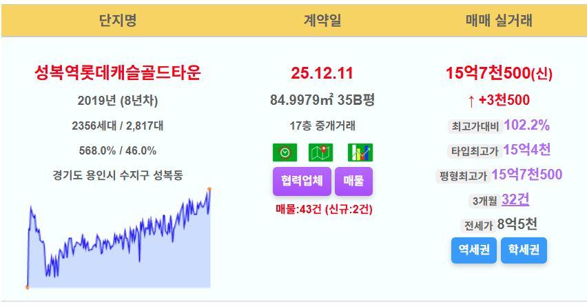 용인시 수지구 성복역롯데캐슬골드타운 35평 15.75억 신고가
