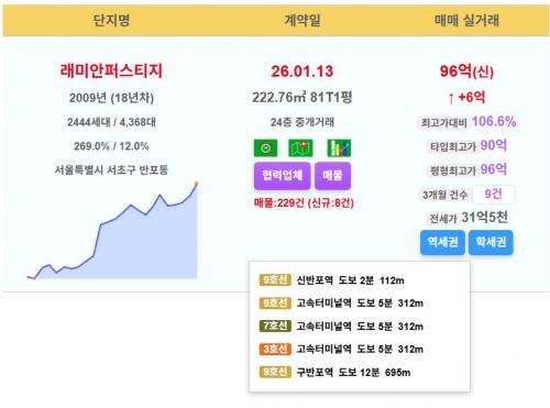 서초구 롯데캐슬갤럭시(50-1) 50평 43.37억 신고가