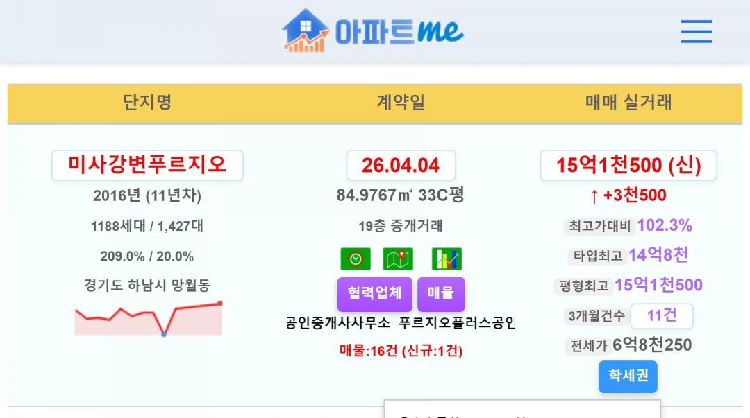 미사강변푸르지오 33평 15.15억 신고가~!!