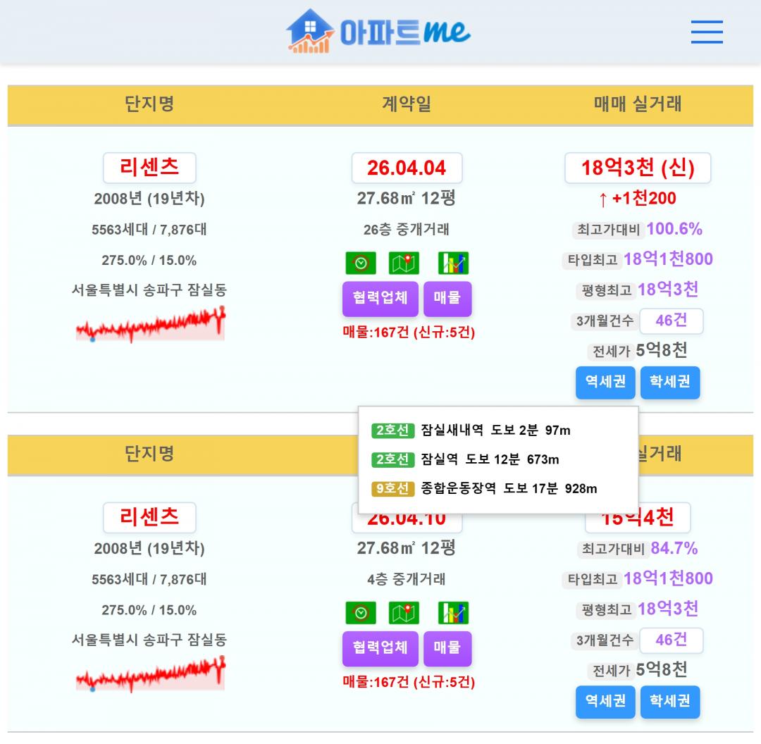아파트미 수도권 주요 실거래가 (4.17)