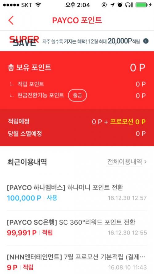 sc포인트로 페이코 포인트로 전환한건,