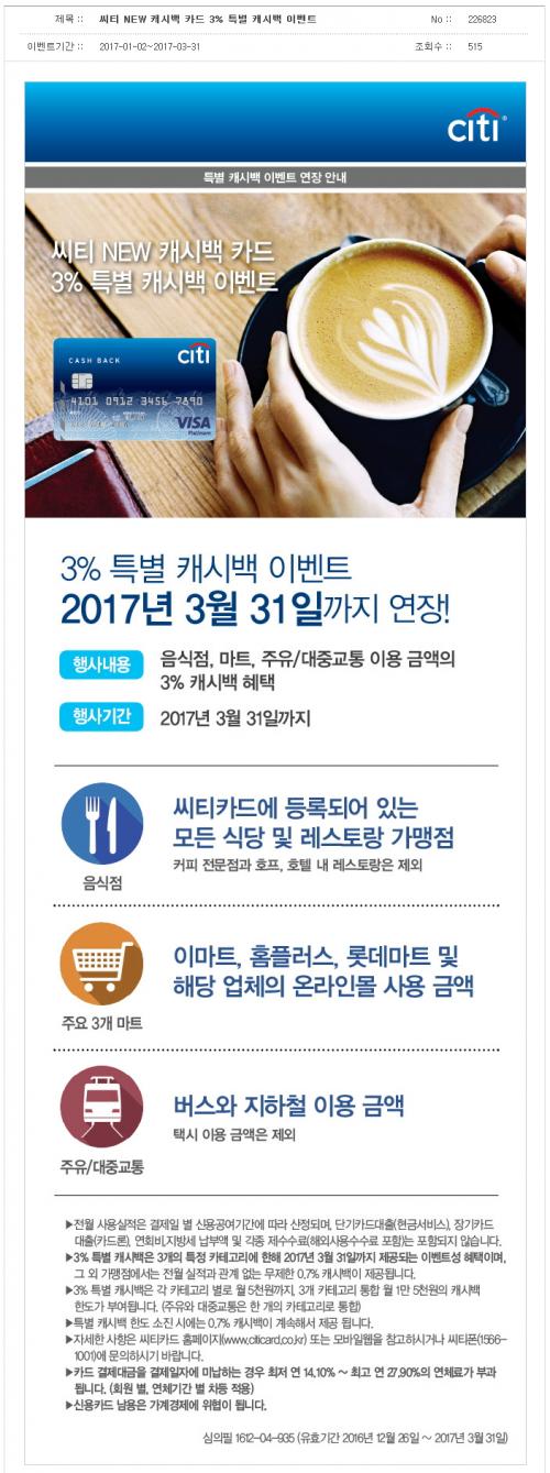 씨티체크는 0.5%캐쉬백이네요...그래도 저는 발급 받습니다...그거라도 어디냐고..ㅎㅎ | ||