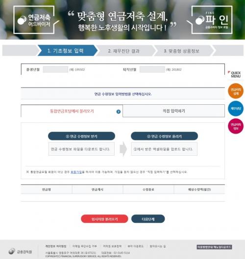 3. 기초정보화면에서 연금수령정보를 가져오고, 다음단계로 넘어가면 재무진단 결과가 나옵니다.