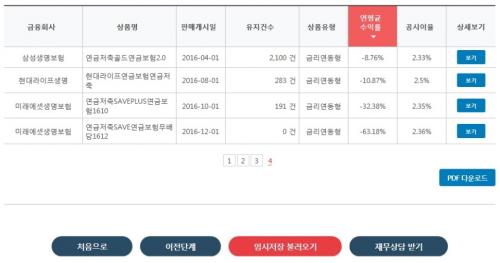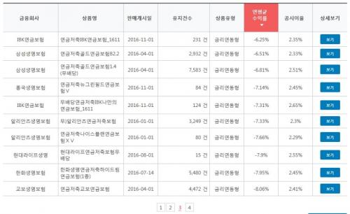 현재 판매중인 상품정보가 간략하게 나오는데 자료를 보면서 드는 생각은 노후준비가 쉽지 않구나입니다.