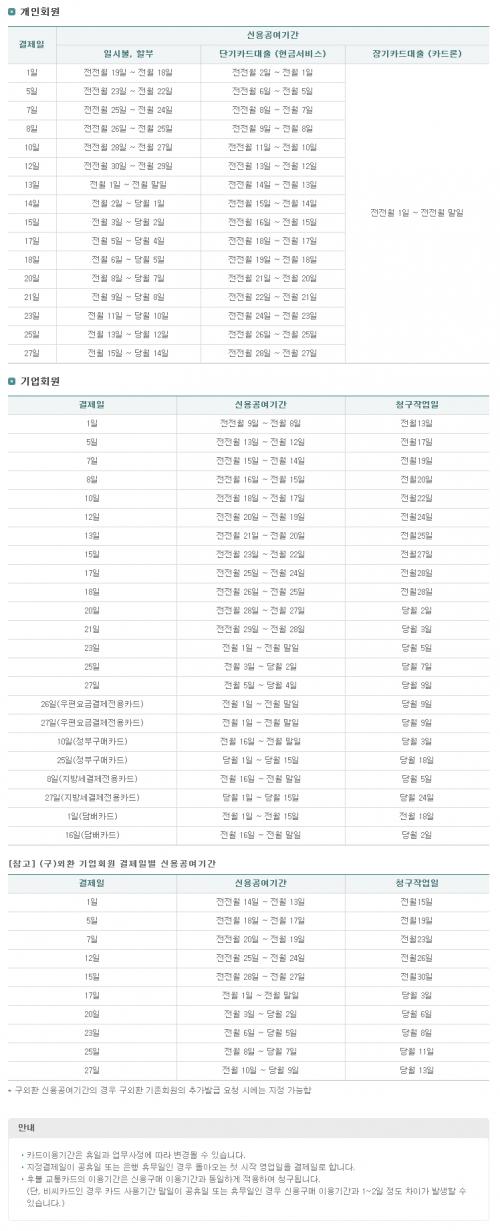 삼성카드의 경우 정확한 기간 확인은 아래링크 이용