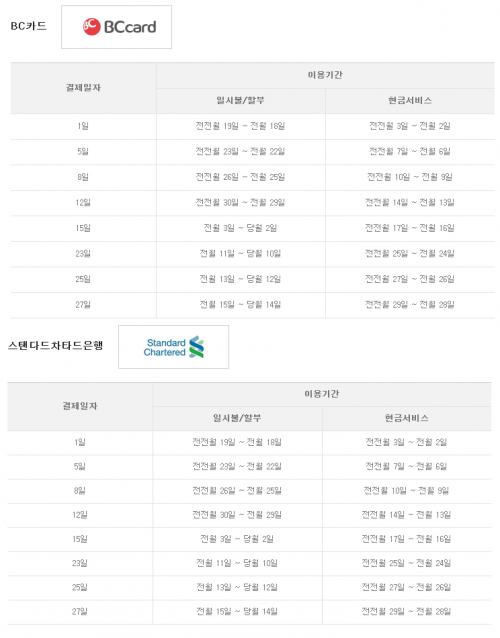 BC카드 각 회원사별 이용기간 확인은 아래링크 이용