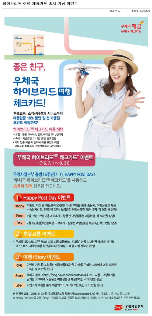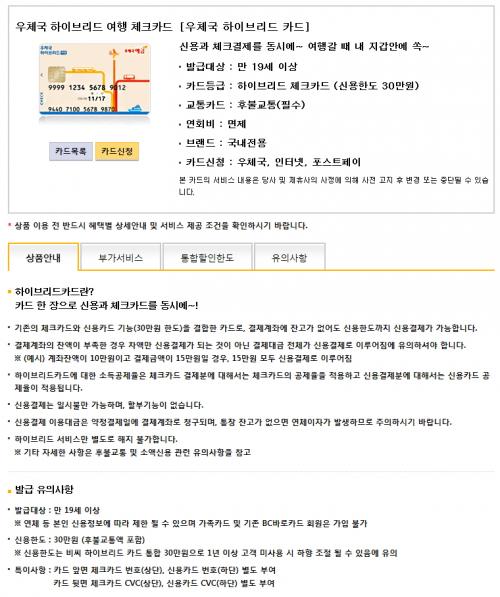 우체국 자체 카드 중에서는 최초로 후불교통과 소액신용기능이 가능해졌네요.