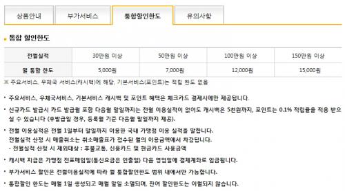 여행사 결재할때 10% 캐쉬백은 좋은데 통합 할인 한도가 짜니.. | ||