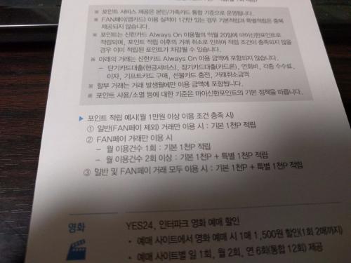 그리고 올웨이즈 앱카드로 조건이 1회 인지 2회 인지 헷갈렸는데 설명서 보니 앱카드로만 사용시 2회 써서 1만원 넘기면 되구요. 실물카드 결제가 1회 있는 경우는 앱카드로 1회 써서 총합 1만원 넘기면 되는 거더라구요.