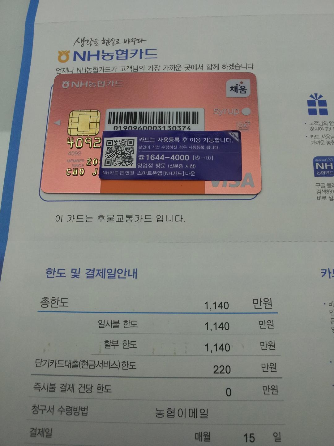 허 카드에 바코드 박혀있네요 겁나 편할듯요 ㅋㅋ |