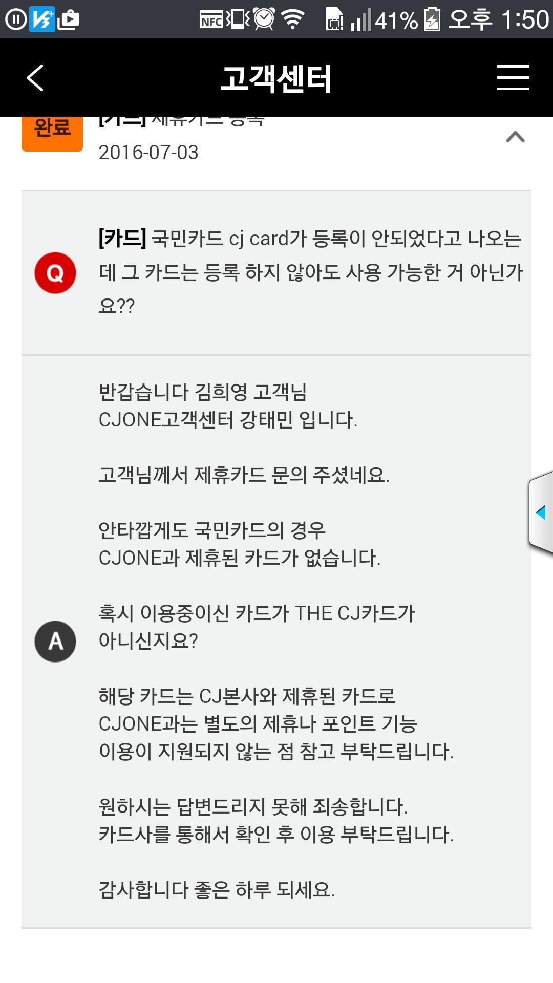 왜같은글을 답변 받고도 타 커뮤니티에도 올리고 여기에도 올리시는지.. 난독증 있으신가요? cj카드와 cj one카드는 다릅니다. 상담원 답변에 정답이 있지 않습니까? 뭐가 그리 이해가 안되고 억울하신지.. |
