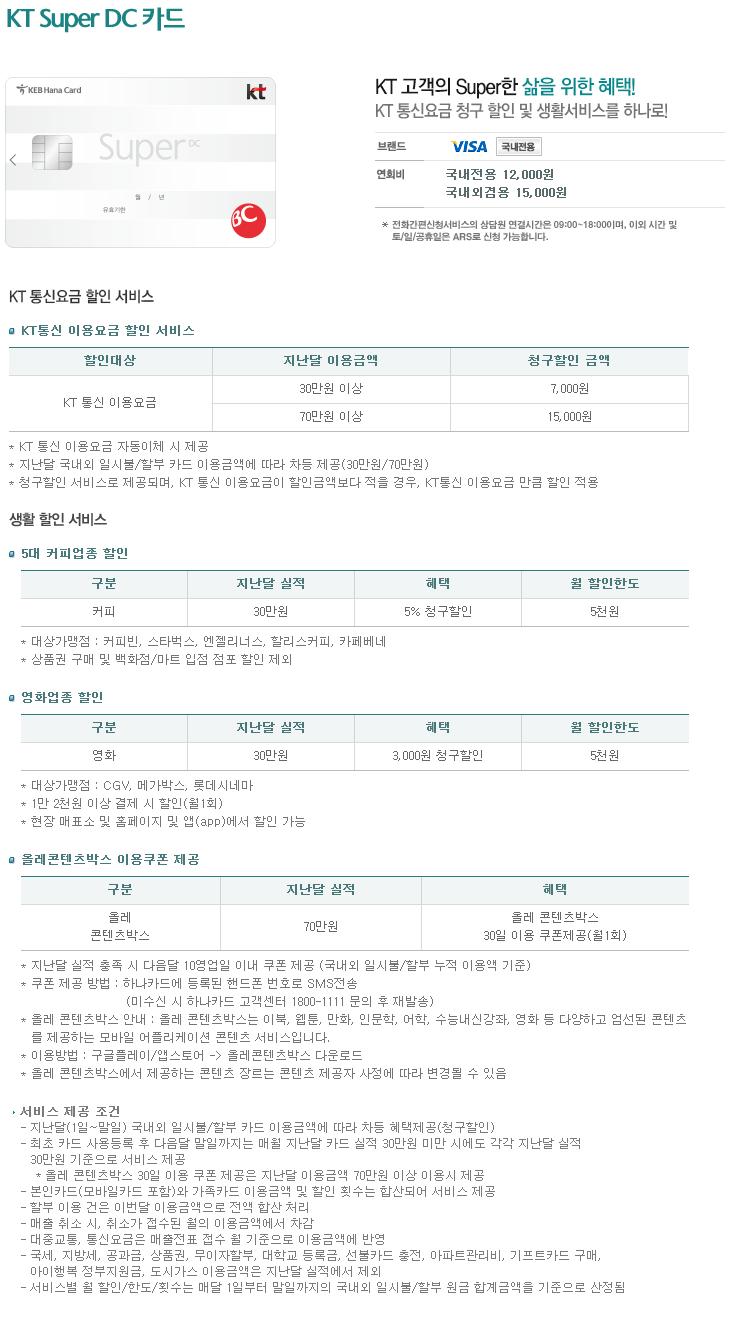 출시되는 BC상품입니다. KT Super DC, KT Super 할부