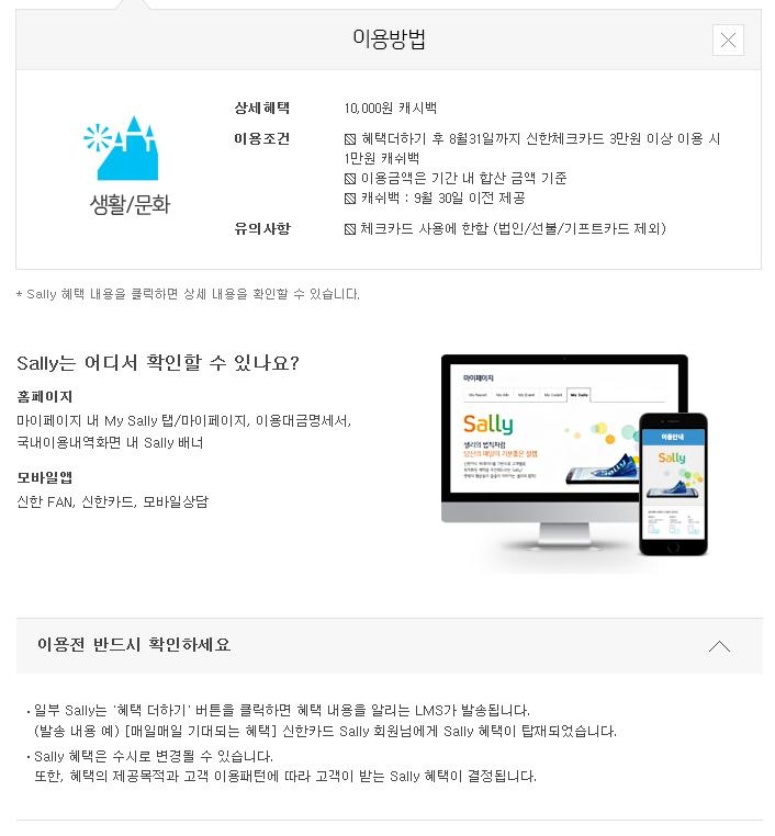 신한카드app > 첫 화면에서 Sally 선택 > 나만의 혜택 > 확인 |