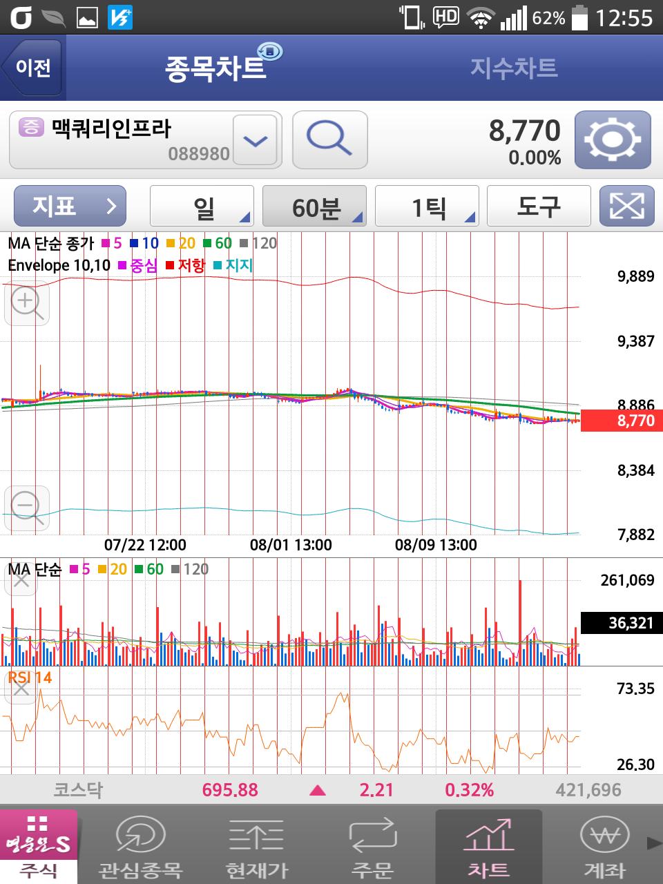 아래는 참고용으로 일봉/60분봉 차트 첨부합니다.