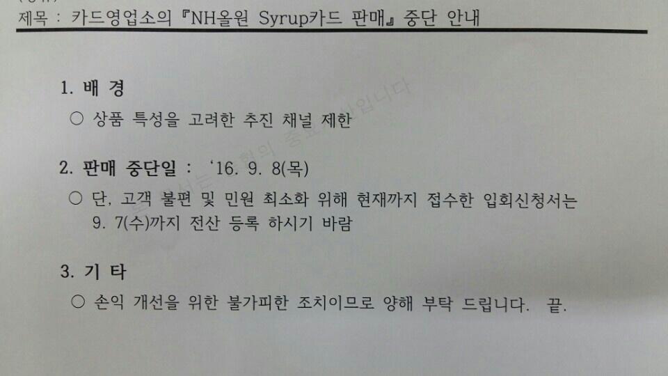 3~4개월만에 중단이라... 카드 기획한 직원은 인센티브가 아니라 징계를 받을까요... |