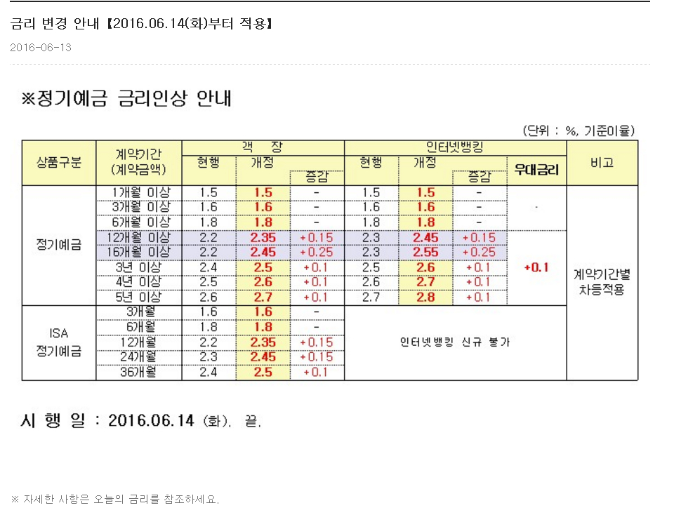 적금은 기존과 동일합니다.