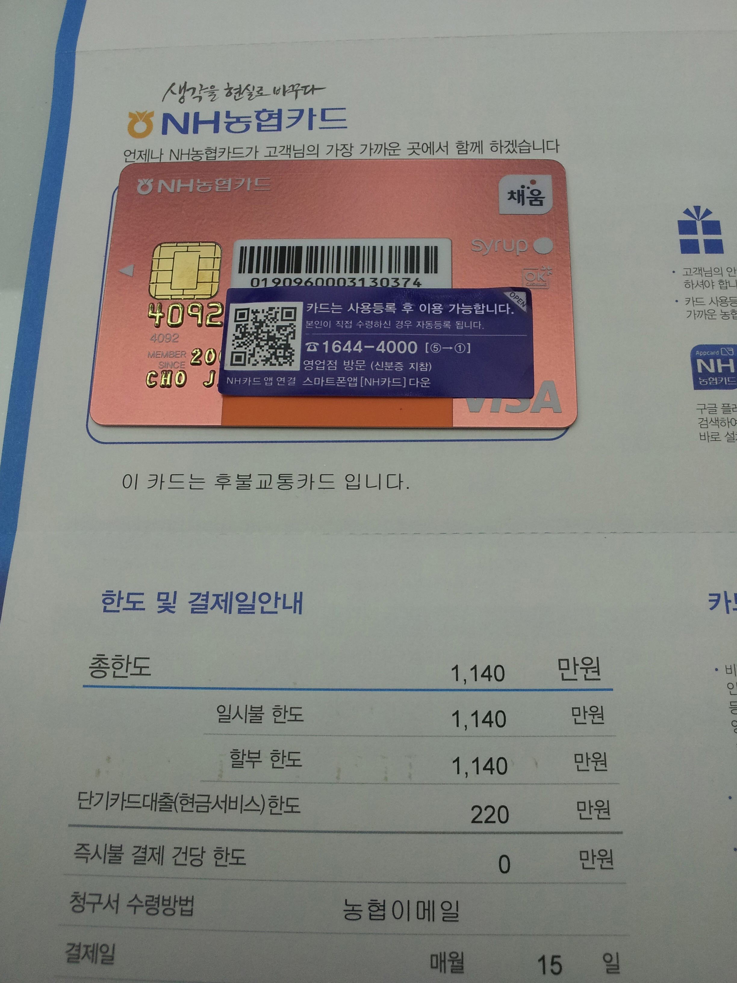 NH농협 Syrup신용카드 오늘 수령~ > 재테크포럼