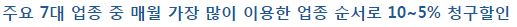 매달 그 가장 많이 사용하는 업종 별로 순위를 매겨 할인율을 순서대로 주는데요