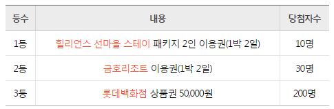 10만원 이상 사용하면 이벤트 응모 기회가 주어지는데