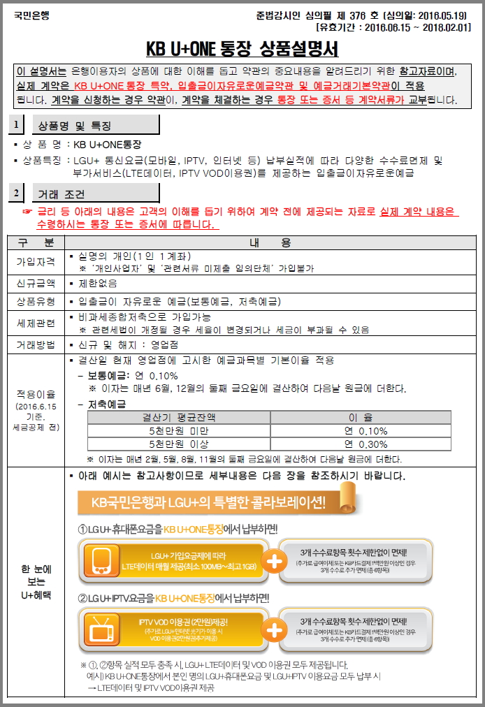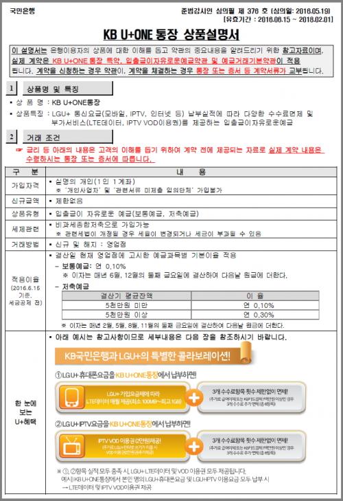 물건삽니다님의 글 : 정보 국민은행 U+ ONE 통장