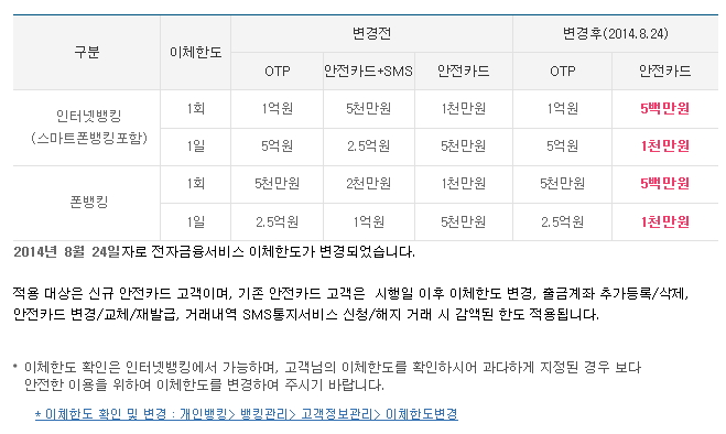 1. 인터넷뱅킹 이체한도 변경은 영업점 방문 없이 가능한가요?
