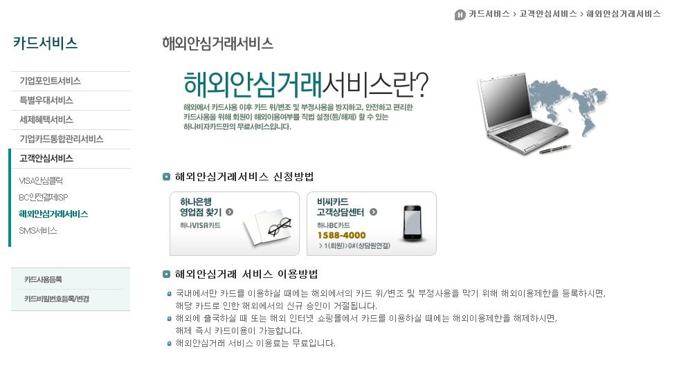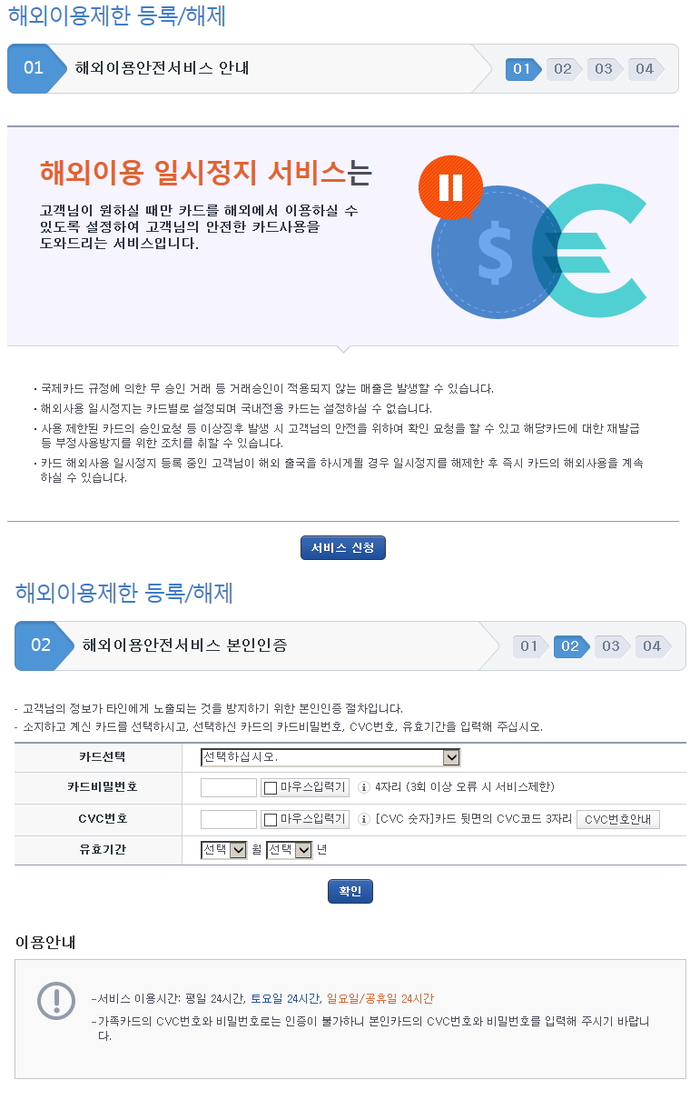 카드서비스 > 고객안심서비스 > 해외안심거래서비스