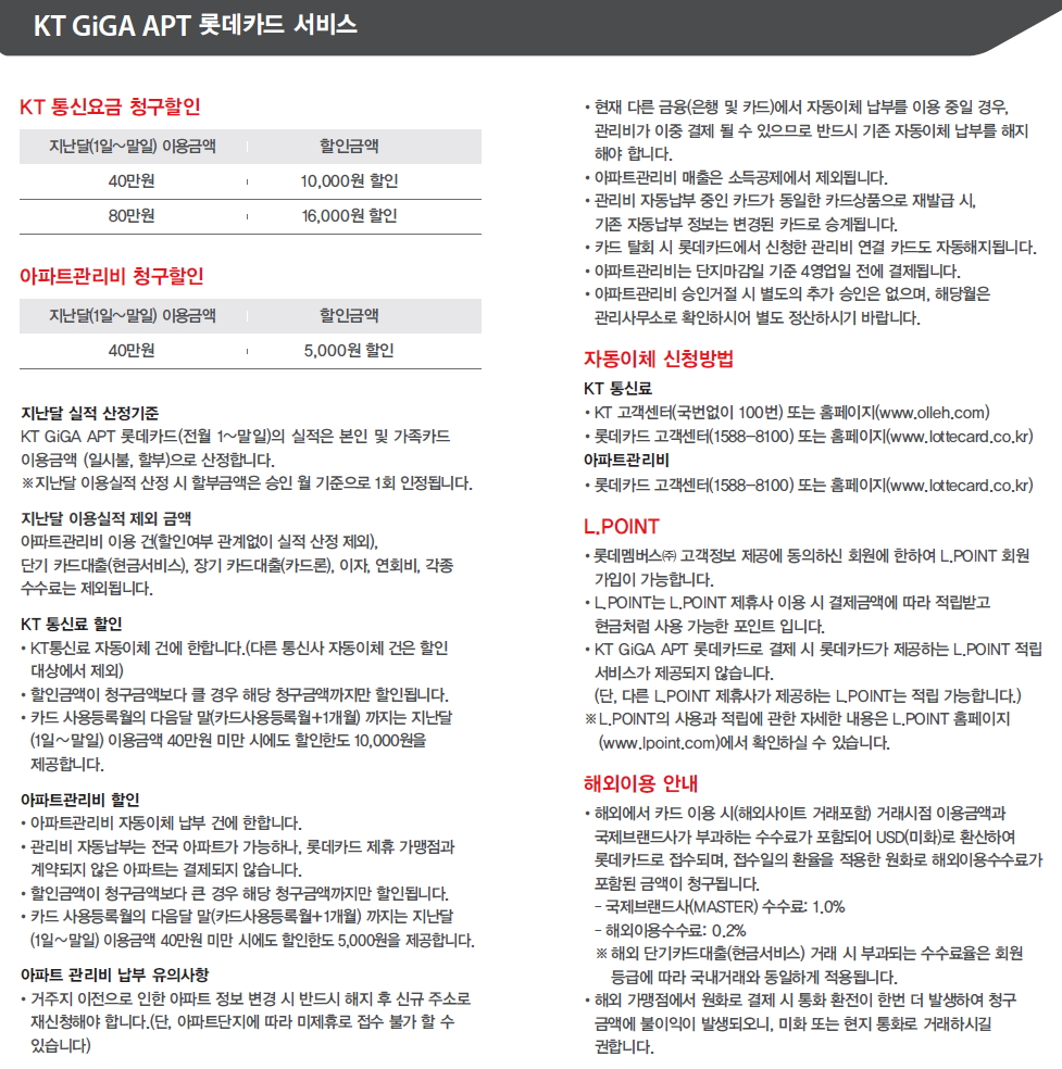 롯데카드 GiGA APT 신용카드 안내페이지