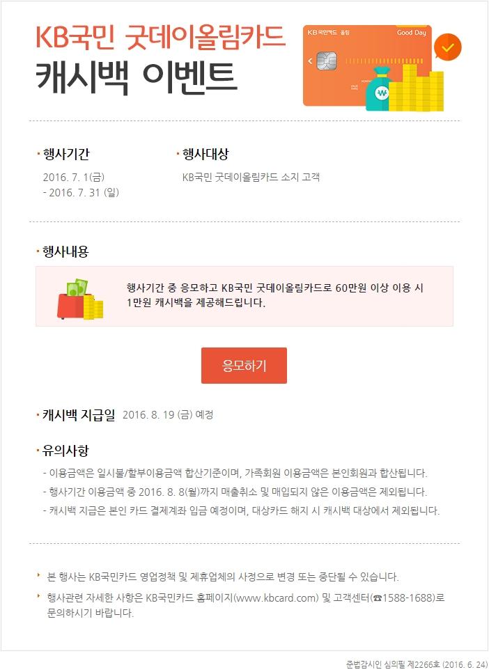 국민카드] 굿데이올림카드 캐시백 이벤트