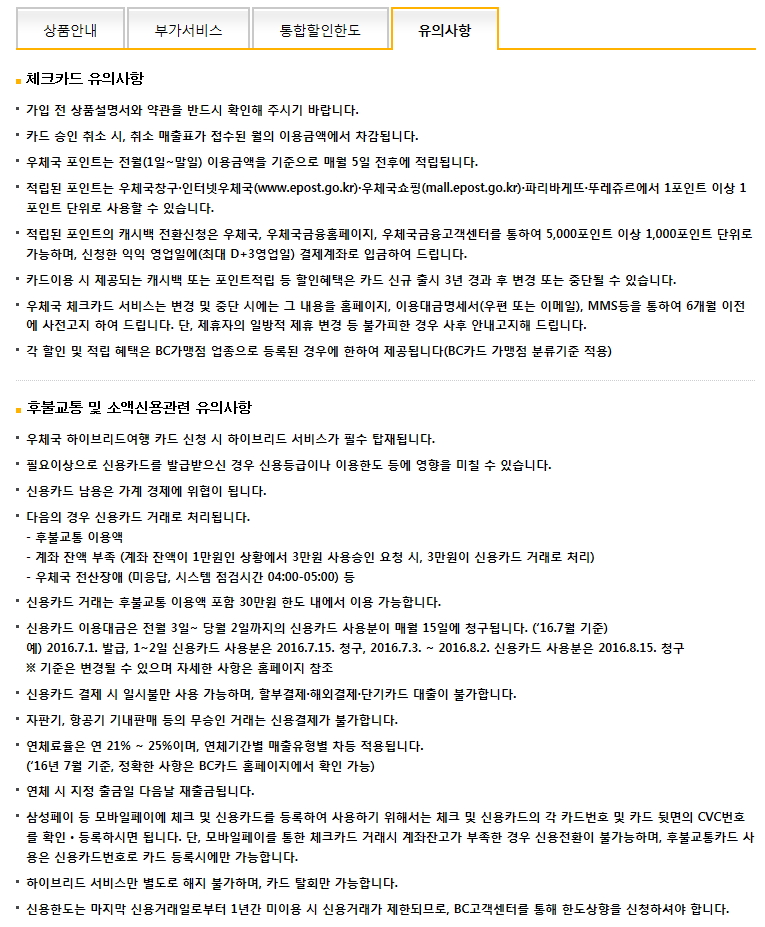 우체국 자체 카드 중에서는 최초로 후불교통과 소액신용기능이 가능해졌네요.