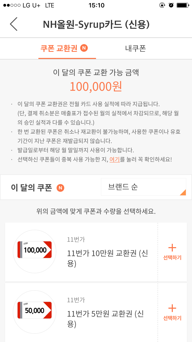 저 많은 쿠폰중에 10만원어치를 쓸수 있는건가요? 저 10만원 받으려면 카드를 얼마를 써야 하는건가요?? |