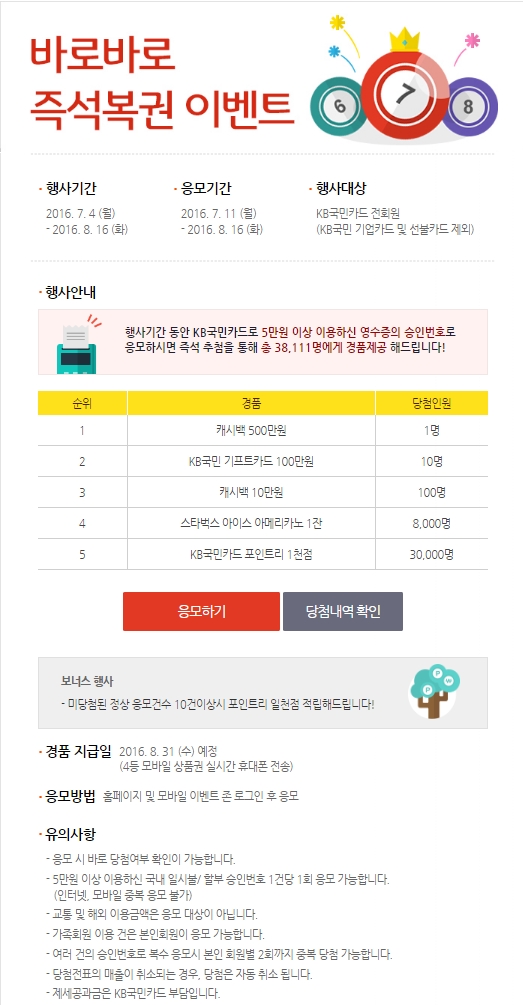 행사대상 : KB국민카드 전회원 (KB국민 기업카드 및 선불카드 제외) |
