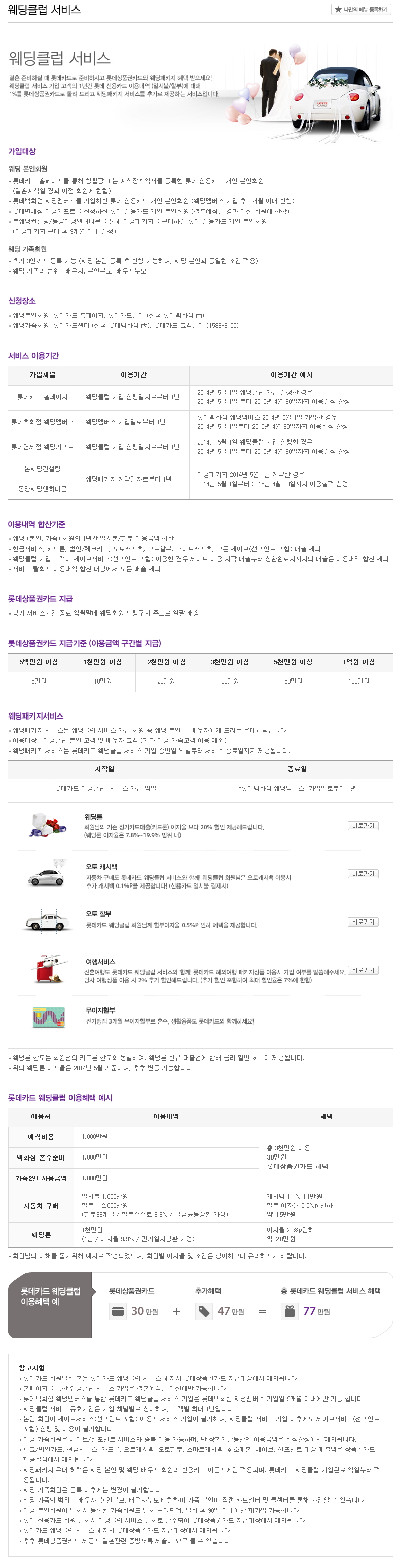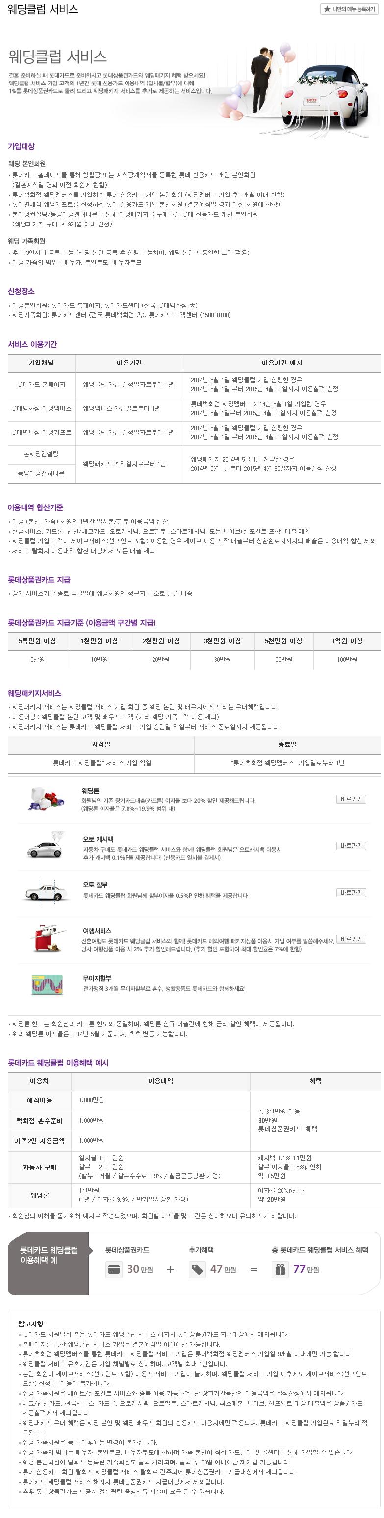 참조로, 롯데카드 웨딩클럽 서비스입니다.