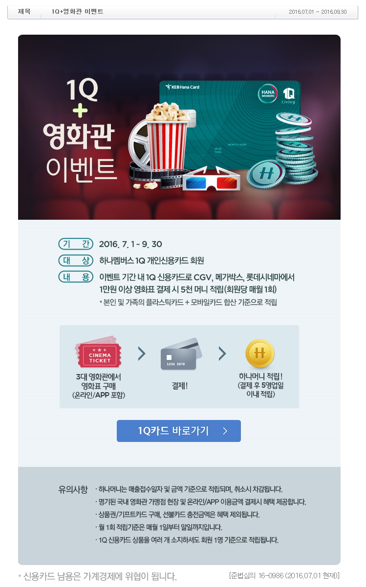 하나카드]1Q 영화관 이벤트(7.1-9.30)