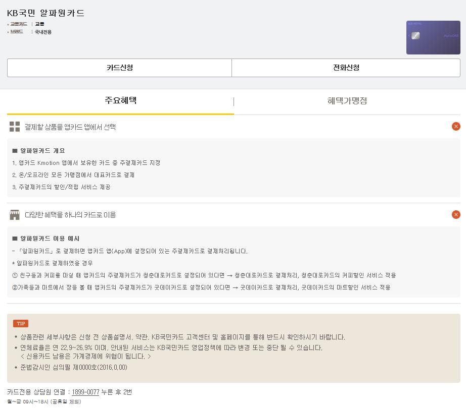 현재 카드사 PC웹페이지에서는 상품설명을 내린 상태입니다.
