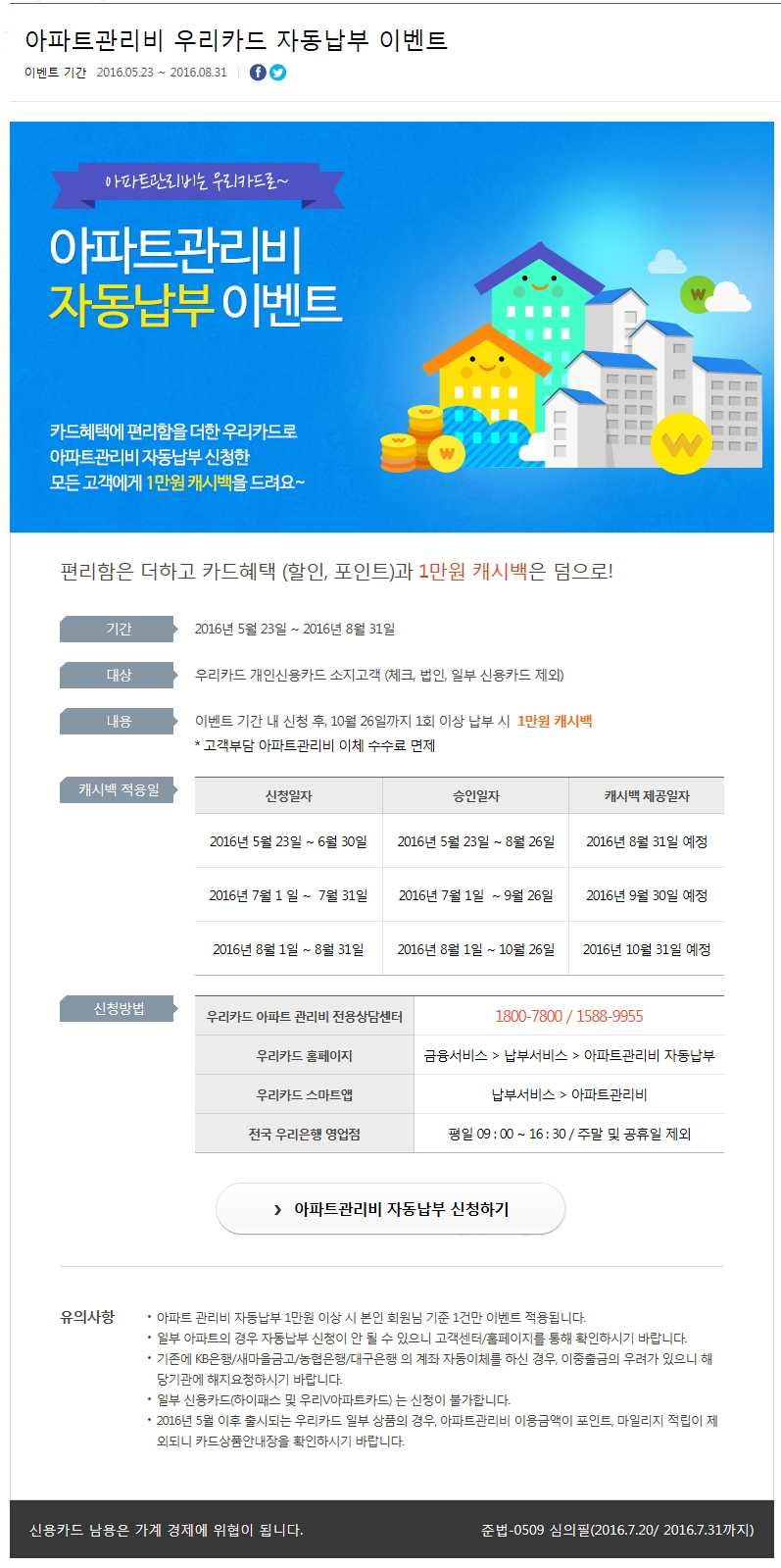 참고로, Blizzard님의 글 : 카드사별 아파트 관리비 혜택