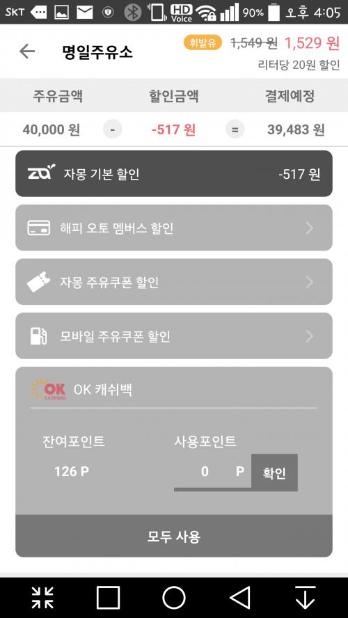 이게 저렴한 SK주유소는 해당안된다는게 문제예요. 쿠폰쓰기는 좋고 일부 할인되긴하지만 직영아니면 안되니 애매한 정도예요.
