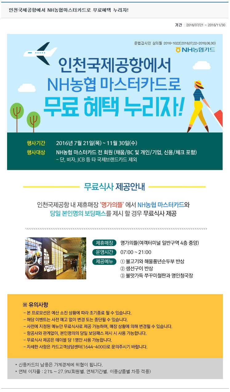 NH농협카드]마스터카드, 인천공항 명가의뜰 무료 식사제공(7.21-11.30) > 재테크포럼