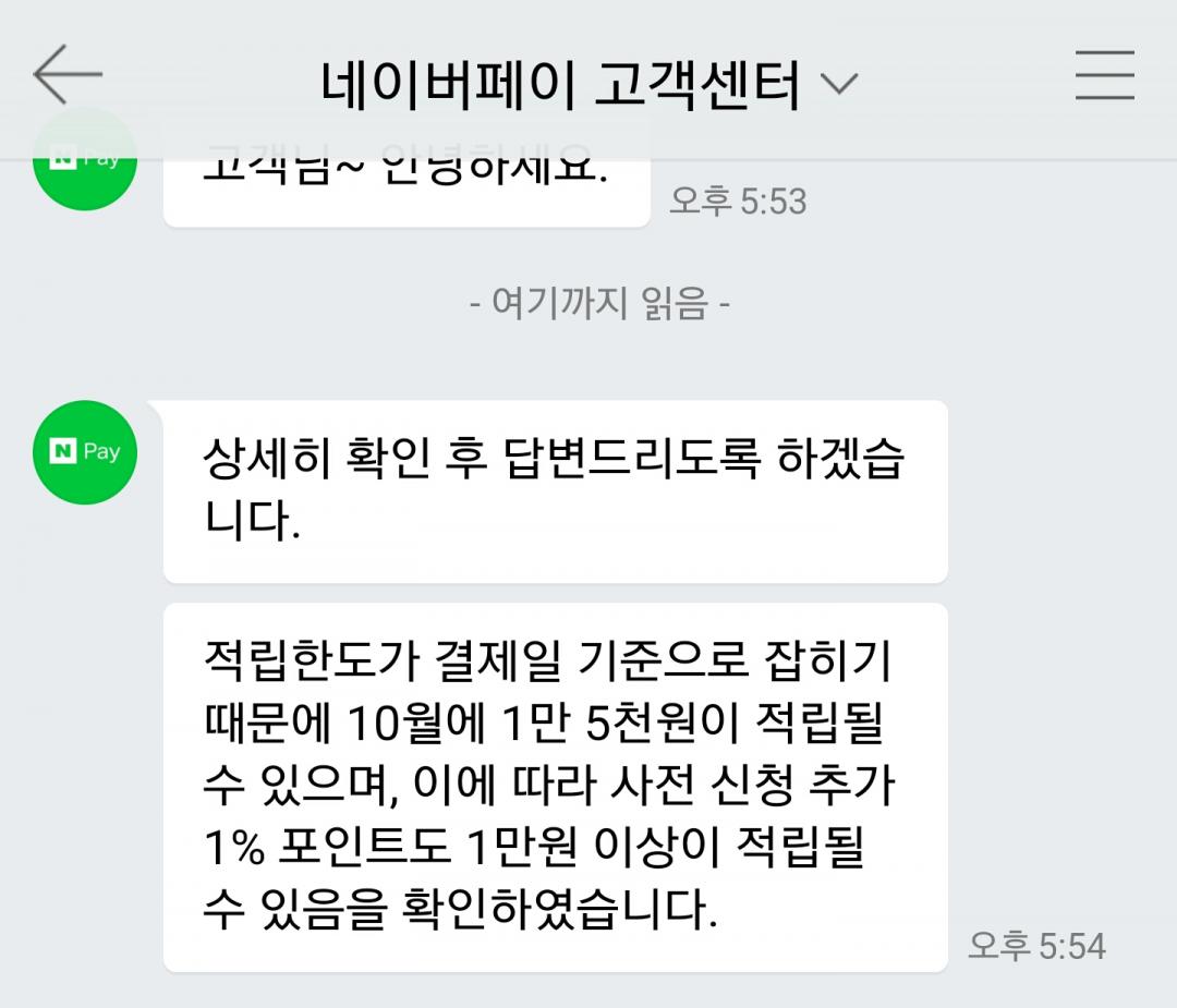 전화로 해봤자 상황파악이 안되기에 상담시에게 충분히 내용을 찾아보거나 확인할 여유가 있는 문자상담으로 진행했는데 이 상담사는 9월에 적립일이 변경되는지도 모르고 헛소리만 하더군요. 계속 추가 적립도 무조건 1만점 한도라고 했습니다