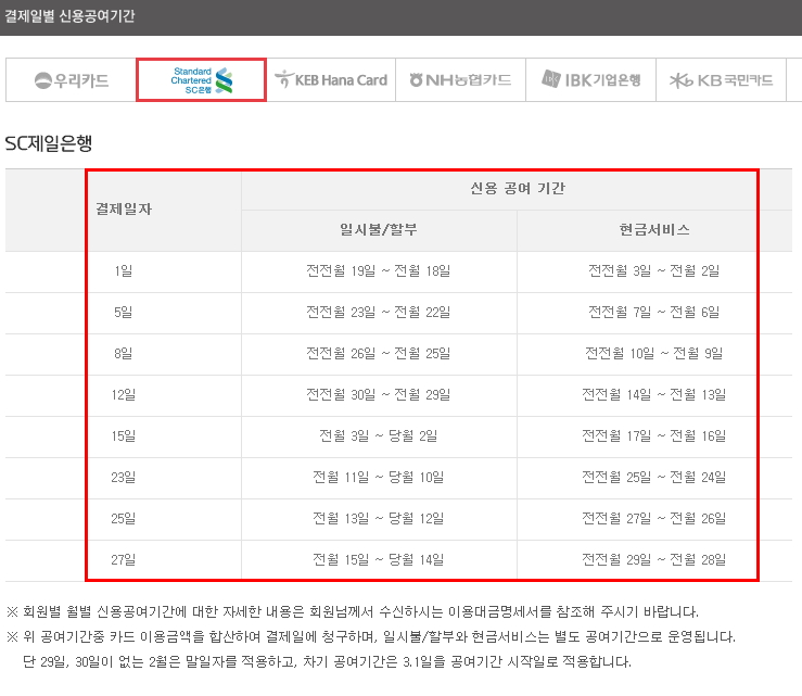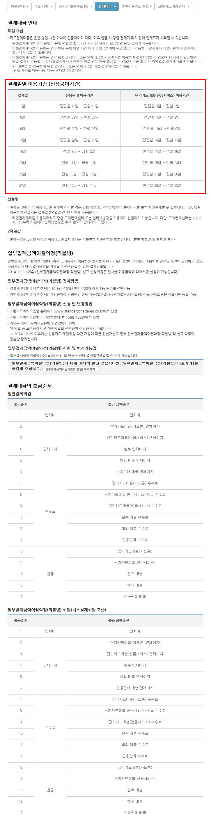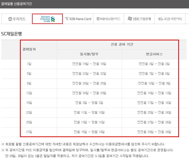 카드사별 결제일별 이용기간(신용공여일) [15.12.04 기준]